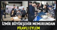 İZMİR Büyükşehir Belediyesi'nde 6 bin memuru kapsayan toplu sözleşmede yeralan yemek yardımı gerçekleşmediği gerekçesiyle belediyede örgütlü sendika eylemlere başladı. Sözleşmeyi imzalayan yetkili sendika Yerel-Sen 31 Mart'ta belediye önünde çadır kuracağını açıklarken, Tümbel-Sen ise memurlara pilav dağıttı.