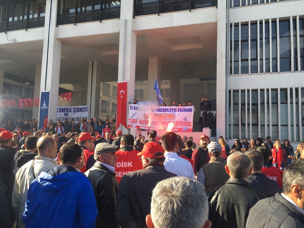 İZENERJİ işçisi mücadele ederek kazandı sıra bizde. Şirket işçisi çalışma arkadaşlarımızın önemli bir kazanımla sonuçlandırdığı TİS imza töreninde biz de Yemek-Ulaşım-Kreş talebimizin yazılı olduğu pankartımızla katıldık. Israrımızı, haklarımızı alıncaya kadar sürdüreceğiz.