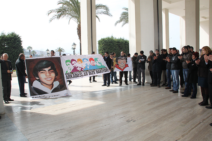 Ege’nin Sesi-Ayten BODUR/Türkiye’yi yasa boğan Berkin Elvan’ın ölüm haberinin ardından, TÜM BEL-SEN 1 No’lu Şube Konak Meydanı’nda ‘Berkin’imizi yıldızlara uğurlayacağız’ diyerek, İzmir Büyükşehir Belediyesi önünde bir basın açıklaması yaptı. Yapılan basın açıklamasında; “Katillerinden hesap soracağız. Tetiği çekenler de çekme emrini verenler de iyi bilsinler ki, halkımıza karşı işlediğiniz suçlar cezasız kalmayacak” ifadeleri kullanıldı.