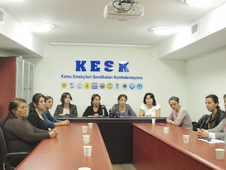 Bugün (14 Ekim 2014) KESK-DİSK-TMMOB ve TTB’li kadınlar Konfederasyonumuz Genel Merkezi'nde bir basın toplantısı düzenledi. Basın açıklamasında Kobené’deki insanlık direnişine destek vermek ve hükümetin çetelere desteğini protesto etmek amacıyla pek çok ilde barış talebiyle sokaklara çıkan kadınlara yönelik şiddet ve gözaltılar kınandı.