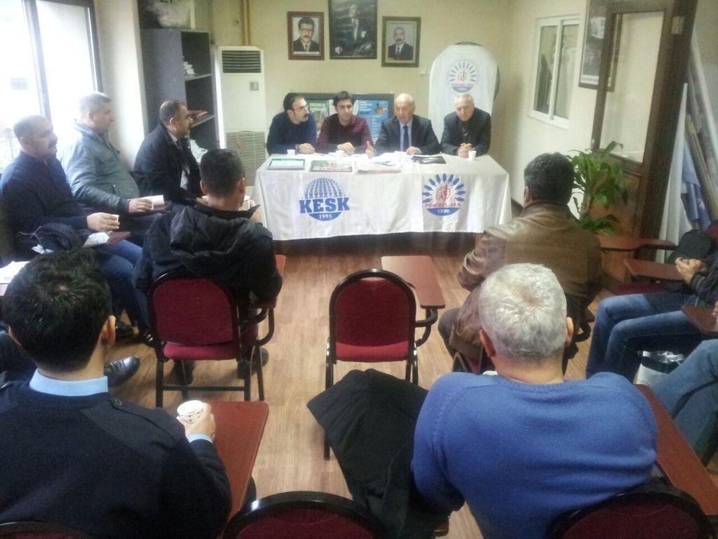 Şube yönetim kurulu ve temsilcilerimizin de katıldığı toplantıda AKP nin kamuda iş güvencesi kaldırılmaya çalıştığını ve Tolu Sözleşme yapmaya engel olan Toplu Sözleşme Yasasının değiştirilmesi konularında sendikalara destek verilmesi gerektiği ve Belediyelerde çalışanların temel taleplerinin karşılanması noktasında duyarlılığın artırılması gerektiği belirtildi.