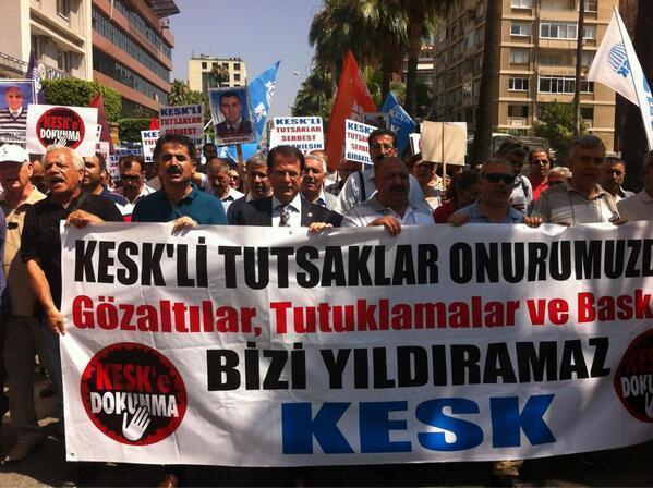 Bizleri baskı altına almaya çalışan, haklı mücadelemizden döndürmeyi amaçlayan her türlü hukuk dışı ve fiili uygulamaların karşısında sessiz kalmayacağımızı haykırıyoruz. KESK olarak bugüne kadar olduğu gibi tutuklu arkadaşlarımızın özgürlüğüne kavuşması için hem örgütlü gücümüzle hem de hukuksal olarak mücadele etmeye devam edeceğiz. Tek suçları sendikal hak ve özgürlükler, barış ve demokrasi mücadelesi vermek olan arkadaşlarımızın derhal serbest bırakılmasını istiyoruz.