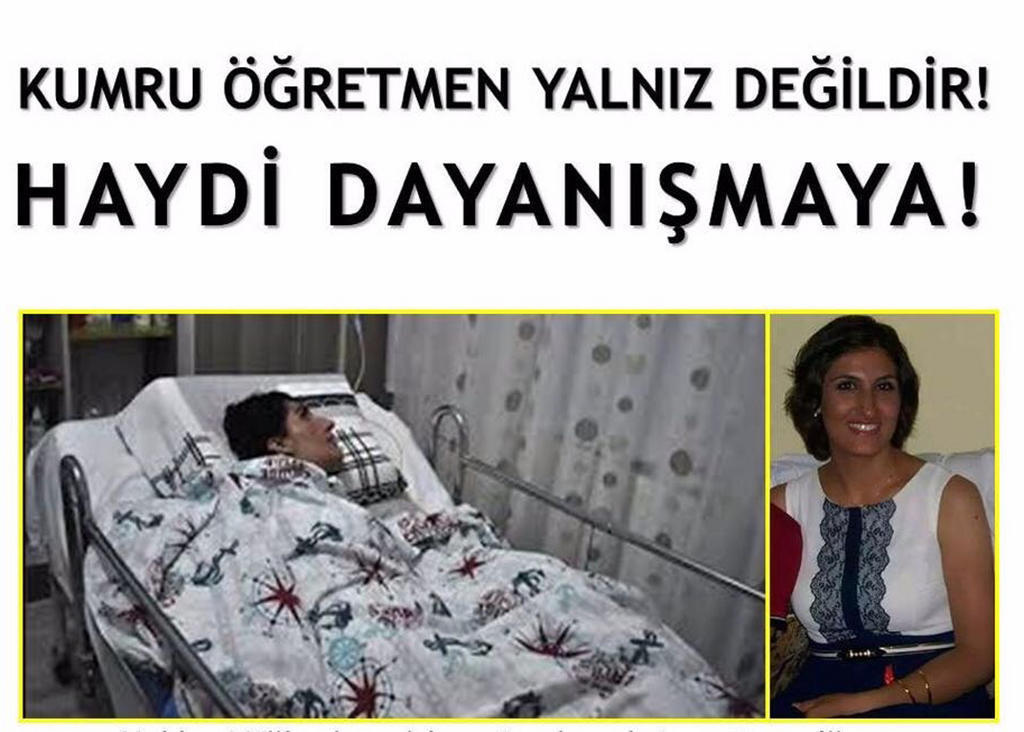 Yatağında uyurken, 8 Haziran 2014’te, evinin bitişiğindeki inşaattan üzerine 16 m3 ıslak harç dökülen ve yatağa bağımlı hale gelen Kumru Konak’ın yurtdışında tedavi ettirilebilmesi için dayanışma ağı kuruldu. Ülkemizdeki sağlık kurumlarının yetersiz olması ve sağlık güvencesinin yetersiz olması nedeniyle kamu emekçisi Kumru öğretmeninin sağlığına yeniden kavuşabilmesi başlatılan yardım kampanyasına bütün çalışma arkadaşlarımızı destek olmaya davet ediyoruz.