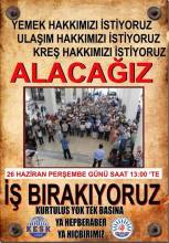 Taleplerimizin Arkasındayız, 26 Haziran Perşembe Günü Saat 13:00'te İş Bırakıyoruz!