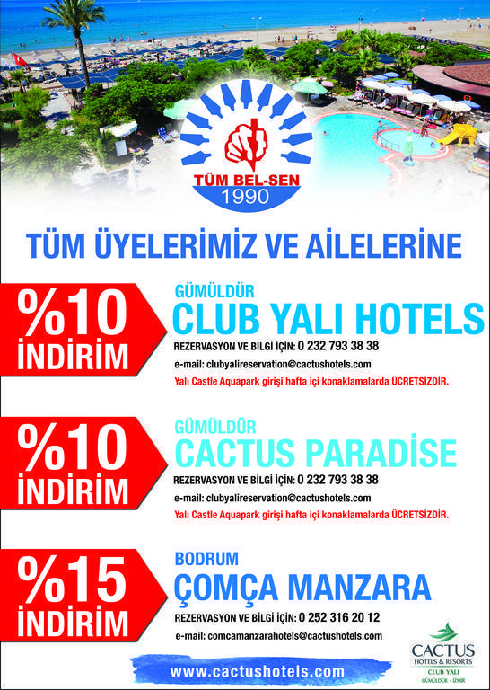 Sendikamız üye ve aileleri için sunulan tatil ve okul indirimini bilginize sunarız. Tatil ve okul indiriminden faydalanmak isteyen üyelerimiz bordrolarını veya sendikamızdan üye olduklarına dair alacakları belgeyi kullanabilirler.