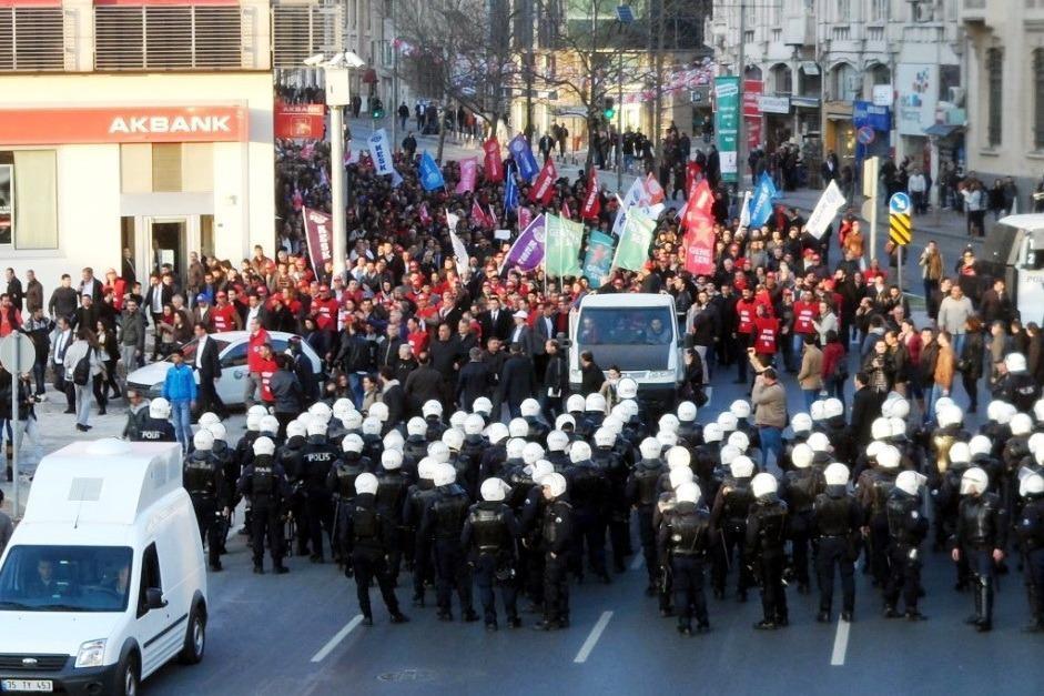 KESK, DİSK ve TMMOB İzmir örgütlenmelerinin “Yalan Talan Soygun Baskı Ve Hırsızlık Düzenine Hayır, Hükümet İstifa” başlığıyla yapılan ortak çağrıya binlerce emekçi katıldı. Basmane’de toplanan emekçilerin yürüyüşüne izin vermek istemeyen polis Gazi Bulvarı girişinde toma ve çevik kuvvetten oluşan barikat kurdu ve yürüyüşe izin vermeyeceklerini söyledi. KESK, DİSK ve TMMOB temsilcilerinin yaptığı görüşme sonrası polis barikatları kaldırıldı.